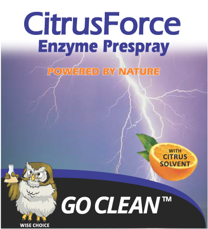 CITRUS FORCE is a fresh lemon-scented enzyme pre-spray. Ideal for restaurants or residential family rooms. Citrus Force uses enzymes best suited for breaking down heavy grease and soil build-up it causes. The latest in enzyme technology means our enzyme begins to work immediately. Powdered form means long shelf-life. Use with Go Clean Citrus Solvent to add solvent boost to Citrus Force! Dilution: 1:60 or 2oz per gal. of water. PH: 10.5