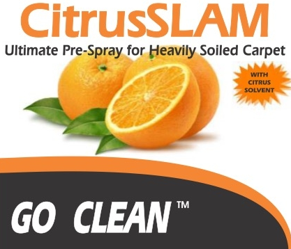 Citrus Slam is a concentrated, heavy-duty, high-pH carpet cleaning pre-spray. It is designed to combat heavily soiled apartments, rentals, dorms, offices, and anywhere there is severe soiling. Citrus Slam is formulated with strong detergents, surfactants, and builders along with Citrus Solvent to suspend and lift heavy soils and grease. Dilution: 1:16 or 8oz to a Gallon PH: 12.5 Note: Dilute at 1:40 to meet C.A.R.B and S.Q.A.Q.M.D. VOC Requirements.