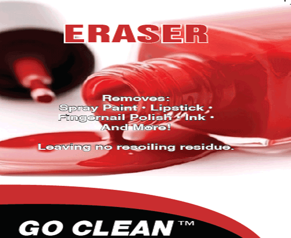 An excellent mark remover for removing spray paints, scuff marks, marker ink, pencil, carbon paper ink, stencil ink, crayons, lipstick, other oil and solvent base marks and stains from road signs, trucks, restroom walls, public buildings, buses, etc.