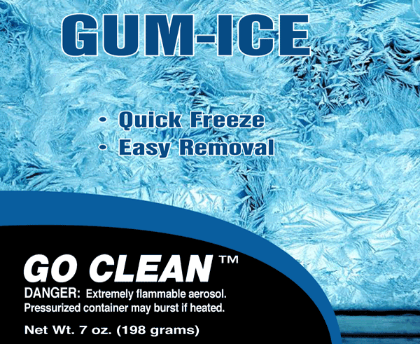 GUM-ICE causes freezing action which makes sticky gums stains brittle allowing for easy removal by chipping / scraping with a putty knife. Not only gum, but candle wax, melted dairy products, and a myriad of other sticky, rubbery trouble spots can be ridden of thanks to GUM-ICE! Quick freeze, easy removal.